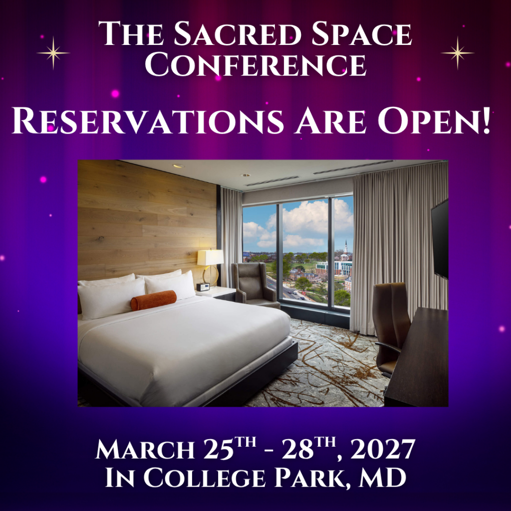 SACRED SPACE AND BETWEEN THE WORLDS CONFERENCE FEEDBACK: The 2026 Sacred Space and Between the Worlds Conference ran Thursday, February 19th, through Sunday, February 22nd, at the Hotel at the University of Maryland in College Park, MD. Your feedback helps us make future conferences the best they can be! If you attended the 2026 Sacred Space and Between the Worlds Conference, please fill out the evaluation form here. The 2027 Sacred Space Conference is slated for Thursday, March 25th, through Sunday, March 26th, 2027, at The Hotel at The University of Maryland in College Park, Maryland.